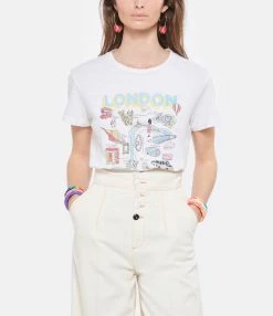 Tee-shirt en coton blanc imprimé illustrations. Col rond. Manches courtes. Coupe droite. Base droite.