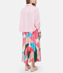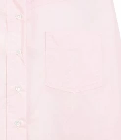 Chemise en coton rose. Coupe ample. Col chemise. Manches longues. Base droite.