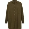 Robe chemise en coton noir. Col chemise. Manches longues. Fermeture boutonnée. Deux poches fendues. Coupe ample. Base droite, plus longue à l’arrière.