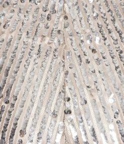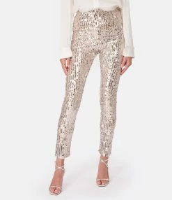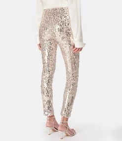 Legging en sequins argentés. Taille haute élastiquée. Coupe skinny. Base droite. Doublé.