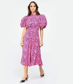ROTATE Robe Bouffante Jacquard Rose