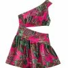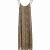 Robe courte en sequins noirs. Col rond. Dos échancré arrondi avec un lien à nouer dans al nuque Manches courtes évasées. Coupe près du corps. Base droite. Doublée.