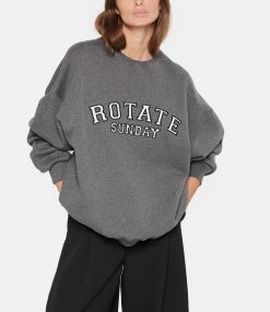 Sweatshirt en coton molletonné gris avec l’inscription “Rotate Sunday” brodée en blanc sur le devant. Col rond côtelé. Manches longues avec poignets côtelés. Coupe oversized. Base droite côtelée.