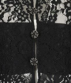 Top en résille beige et strass jaune. Col rond fermé par une agrafe dans le dos. Manches longues. Coupe droite. Base droite.