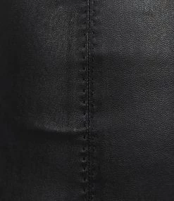 Jupe crayon stretch en cuir noir. Taille mi-haute et élastiquée. Base droite fendue à l’arrière. Non doublée.