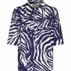 Blouse à carreaux en coton rouge et blanc. Manches longues. Col rond. Fermeture par boutons rouges sur le devant. Broderie ondulée noire aux poignets. Coupe droite. Base droite.