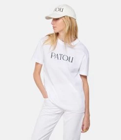 Tee-shirt en coton blanc. Logo PATOU en noir à l’avant. Col rond. Manches courtes. Coupe droite. Base droite.