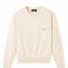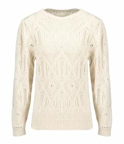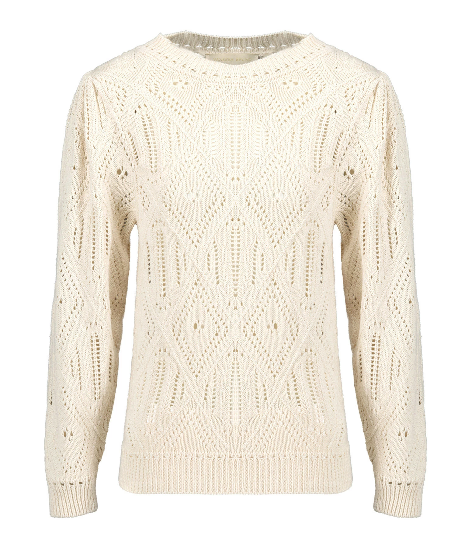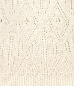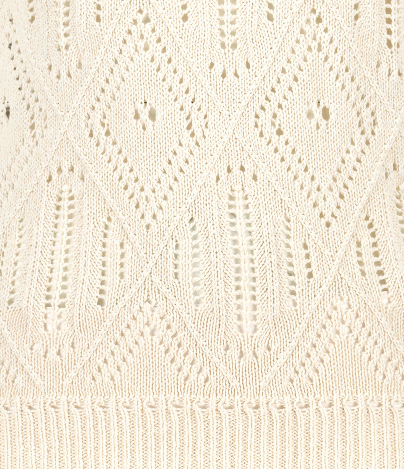 Pull en coton écru. Effet ajouré. Col rond. Manches longues. Coupe droite. Base droite.