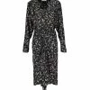 Robe courte brodée en coton noir. Manches 3/4 avec finition en dentelle. Deux poches prises dans les coutures. Coupe droite. Base droite. Ceinture amovible à la taille. Doublée.