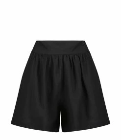 Short noir fluide. Fermeture par zip sur le côté. Deux poches à l’avant. Fronces au niveau de la taille. Coupe cintrée ample. Base droite.