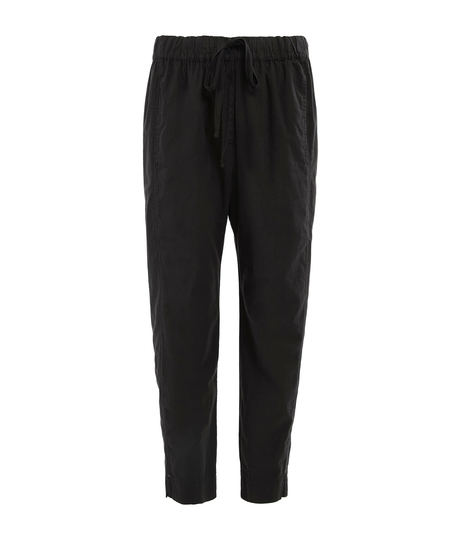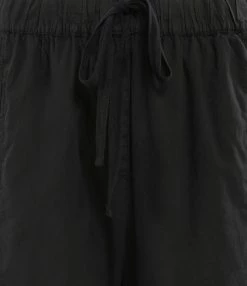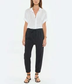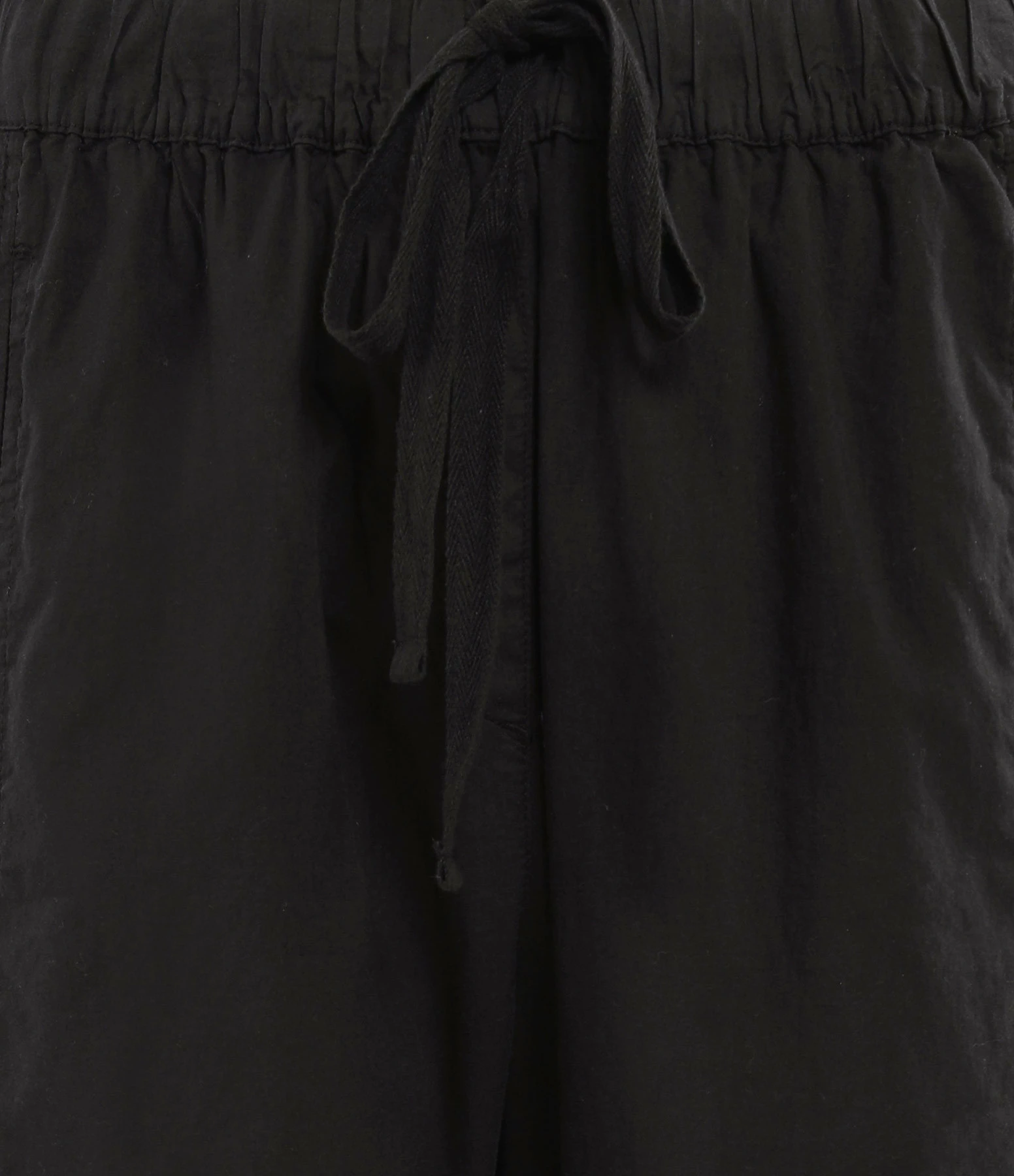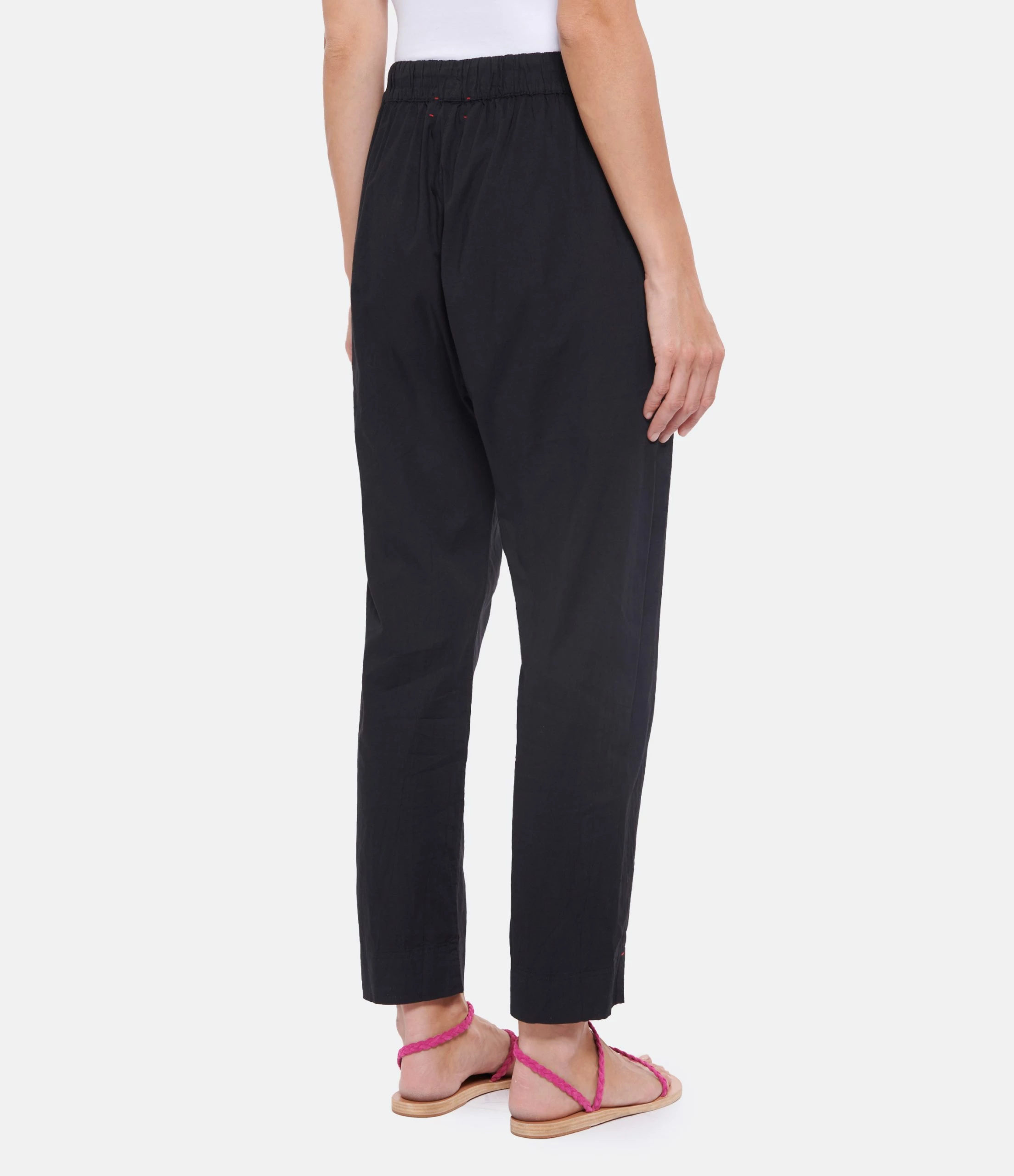Pantalon en coton noir. Taille élastiquée avec liens de serrage. Deux poches italiennes. Non doublé.
