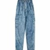 Pantalon en coton vert. Taille élastiquée avec liens de serrage. Deux poches italiennes. Non doublé.