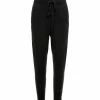 Pantalon en coton vert foncé. Taille élastiquée avec liens de serrage. Deux poches italiennes. Coupe droite.