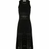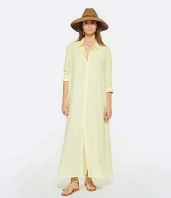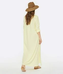 Robe longue en coton noir. Col chemisier. Manches longues avec fentes et poignets boutonnés. Fermeture boutonnée sur le devant. Fentes latérales au bas de la robe. Coupe droite ample. Base droite.