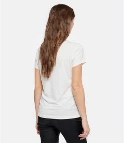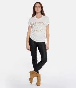 Tee-shirt blanc en coton pour femme, impression dorée “ZADIG & VOLTAIRE” sur le devant. Col rond. Manches courtes. Base droite.