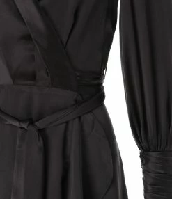 Robe courte en lin à imprimé fleuri multicolore sur fond blanc. Fermeture portefeuille à la taille par ceinture imprimée à nouer. Décolleté plongeant portefeuille en V. Manches longues resserrées aux poignets par boutons dorés et blancs. Coupe évasée. Base asymétrique.