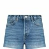 Mini short en lin blanc orné de motifs cachemire brodés dans des tons vert et bleu et de perles. Taille haute avec passants pour ceinture amovible assortie et décorée d’une boucle bijou. Braguette zippée et crochet. Deux poches italiennes. Coupe près du corps. Base arrondie. Doublé.